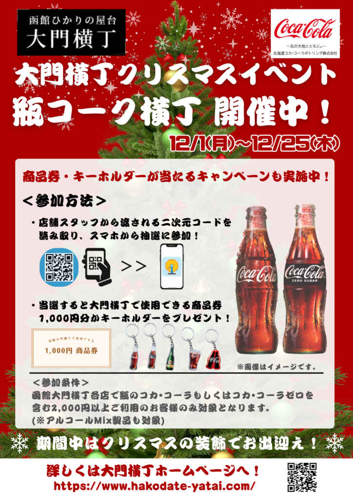 レトロな瓶コーラを片手に、いつもと少し違う“クリスマス横丁”をお楽しみください。