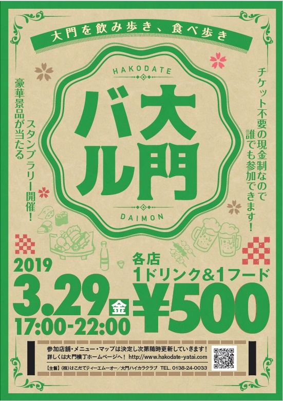 ★大門バルはチケット制ではありません、現金500円でお支払いください